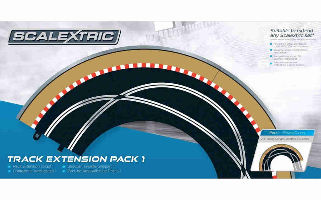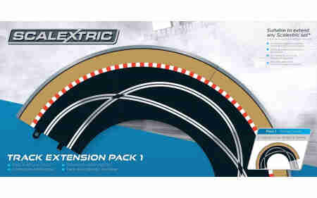 Extending your Scalextric layout has never been easier! The seven Scalextric Track Extension Packs are totally flexible in their design and any of these packs can be added to both Standard or Digital Scalextric circuits. Each pack can be incorporated into a Scalextric circuit, from simple ovals and figure-of-eight tracks to the largest layouts. One or more Track Extension Packs can be added to the same circuit, or you could use all the Track Extension Packs to make a hugely impressive circuit incorporating all the featured track pieces! The reverse side of the packaging explains how the Track Extension Pack can be incorporated into any number of layouts.Features ‘One size fits all’ concept ;Compatible with Digital and Standard sets contents;Fits any sized layout;Contents: 2 x Racing Curves, Borders and Barriers.Please note: The Leap Ramp pieces found in Track Extension Pack 2 and the Ultimate Extension Pack are not suitable for Digital Circuits.